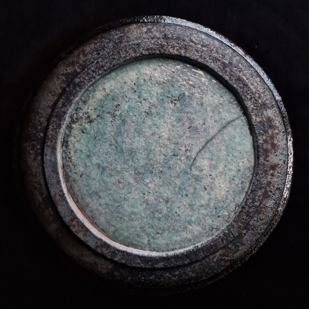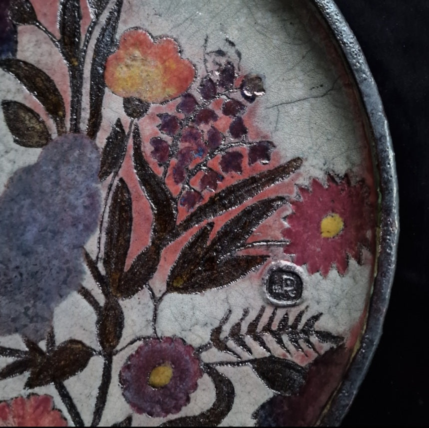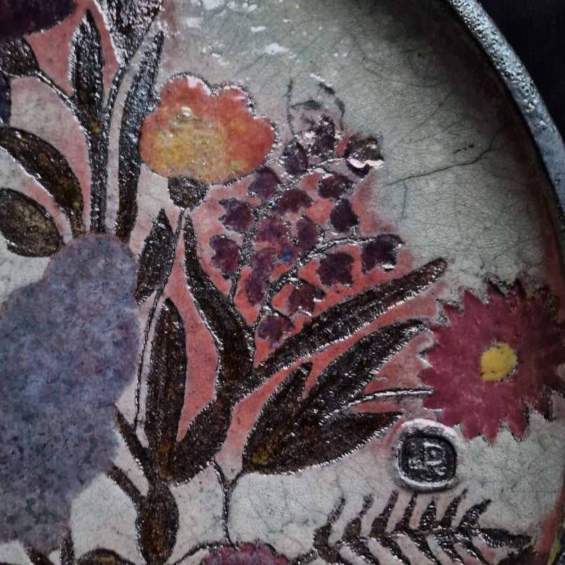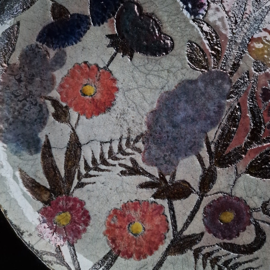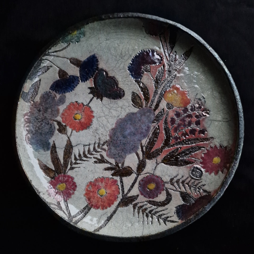 Rankų darbo indas. Dydis 35 x 35 x 5. Raku degimo technika.